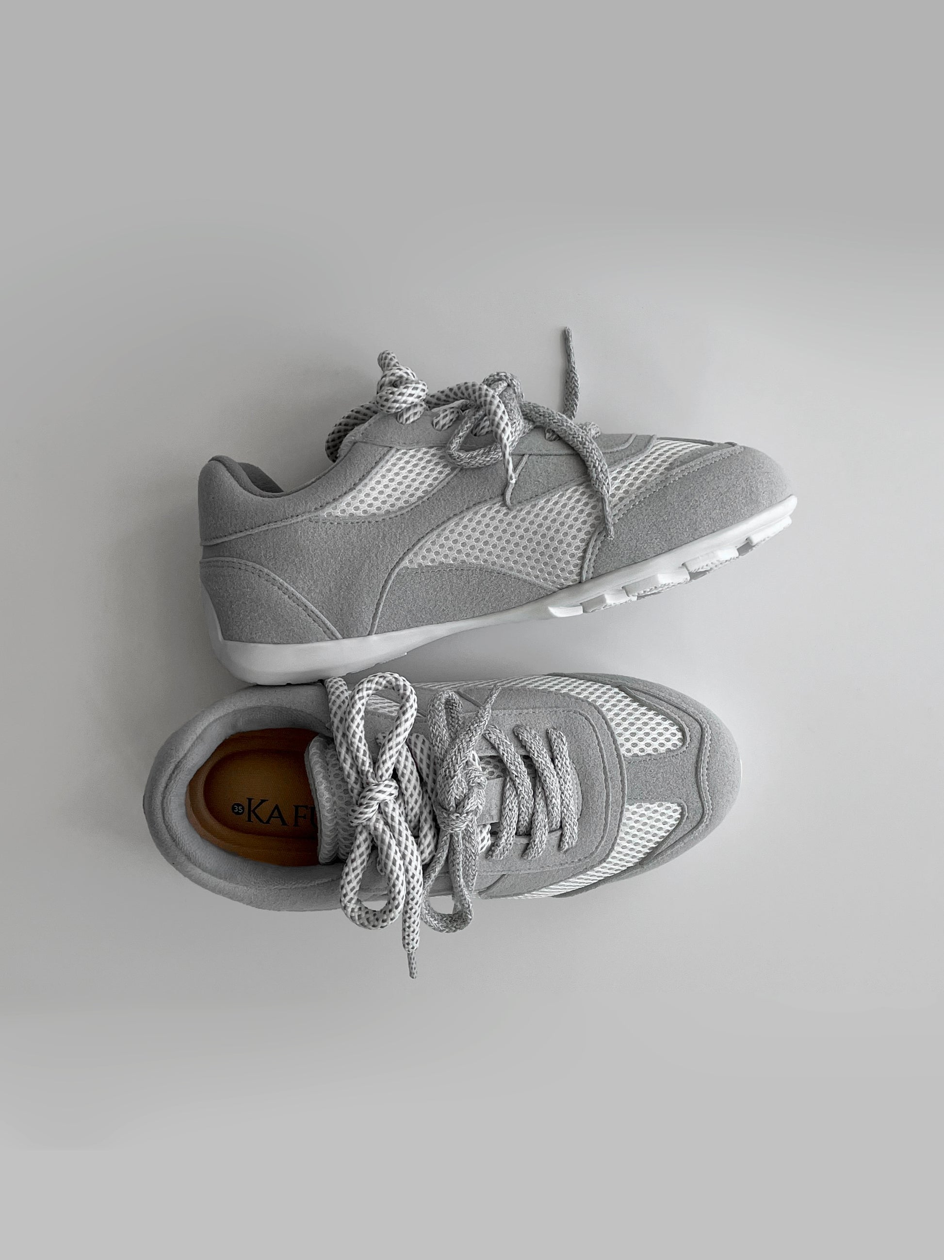 El tono gris con blanco se convierten en los protagonistas de estas zapatillas de suela baja, inspiradas en el equilibrio entre lo clásico y lo actual. Una pieza que transmite calma, estilo y autenticidad.